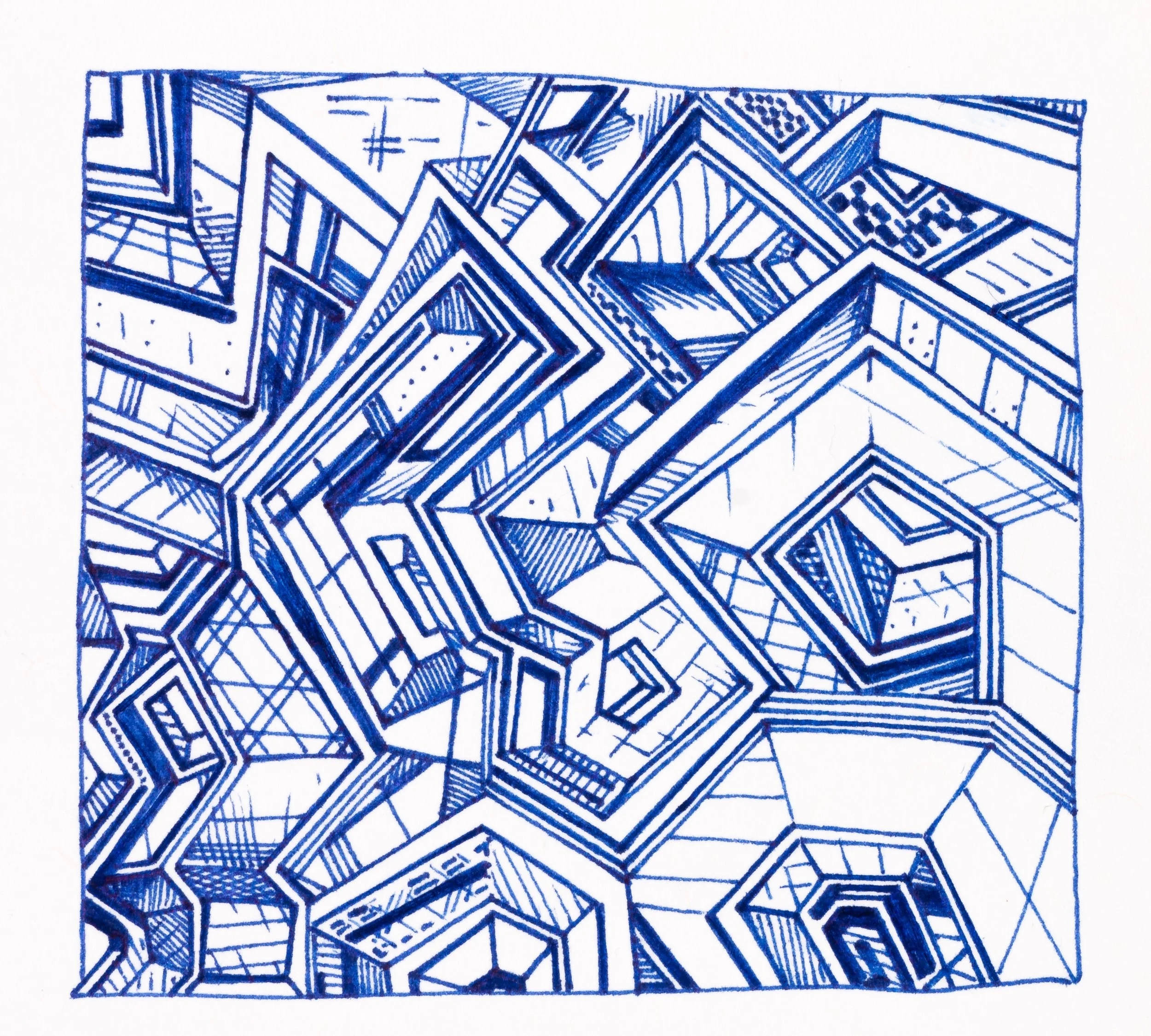 Blue Ballpoint Pen -Art is approx 8.5 x 9 cm - on cardstock